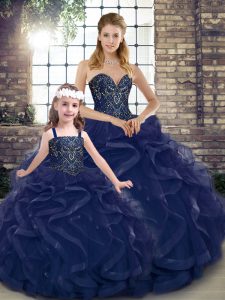 Inexpensive Sleeveless Lace Up Floor Length Beading and Ruffles Sweet 16 Dresses