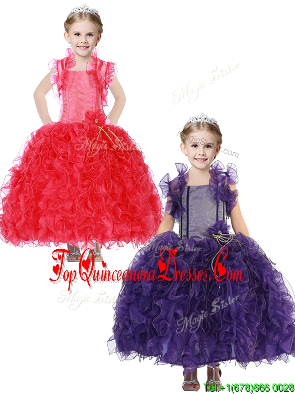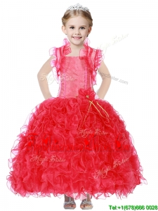 Inexpensive Straps New Arrival Kid Pageant Dresses with Hand Made Flowers and Ruffles