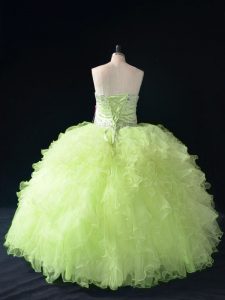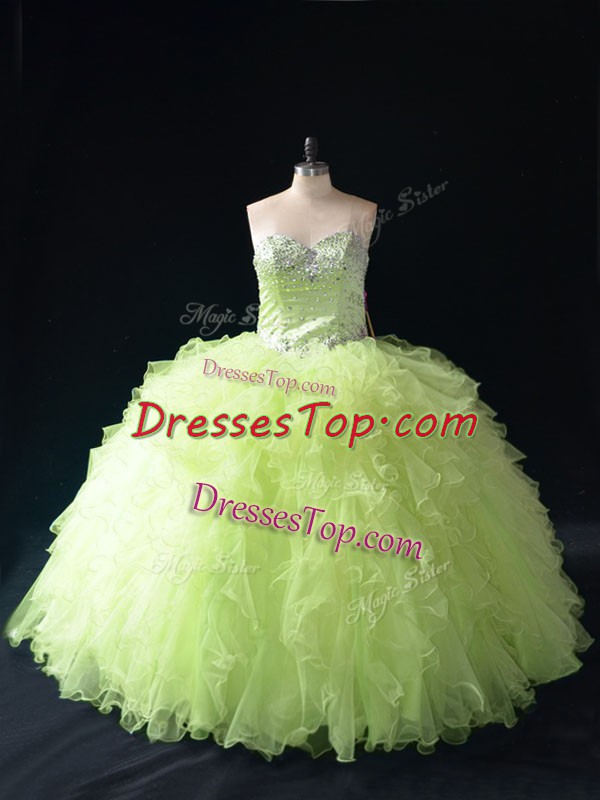 Inexpensive Yellow Green Lace Up Sweetheart Beading and Ruffles Quinceanera Dresses Tulle Sleeveless