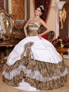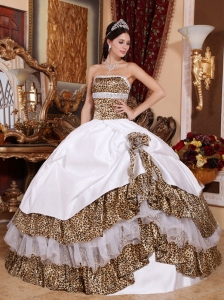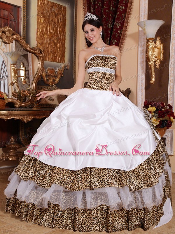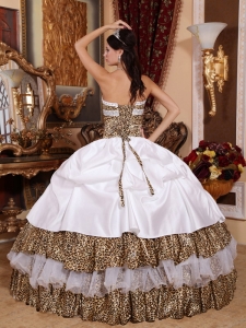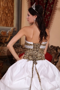 Informal White Quinceanera Dress Leopard Beading Ball Gown