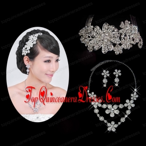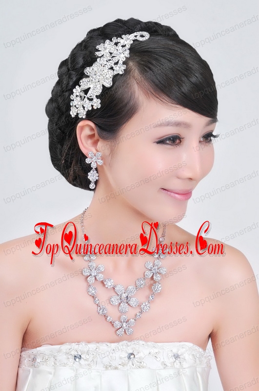 Intensive Flower Jewelry Set Including Necklace And Headpiece