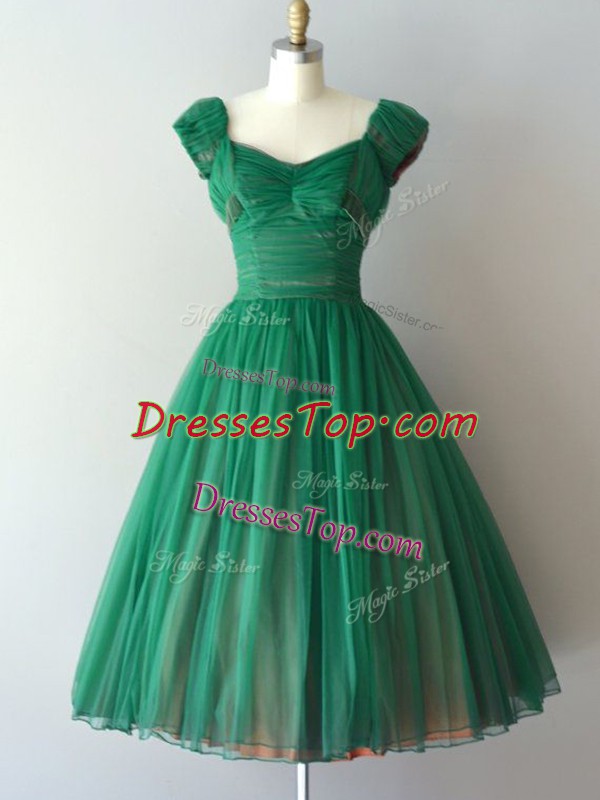 Knee Length A-line Cap Sleeves Green Dama Dress Lace Up