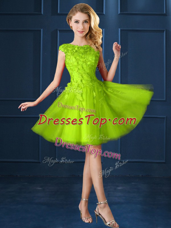 Knee Length A-line Cap Sleeves Yellow Green Quinceanera Court Dresses Lace Up