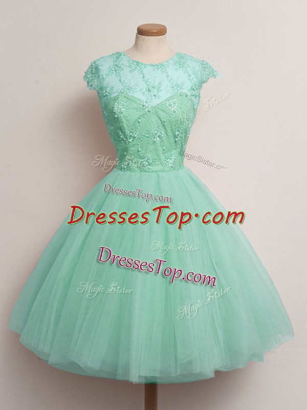 Knee Length Ball Gowns Cap Sleeves Apple Green Vestidos de Damas Lace Up