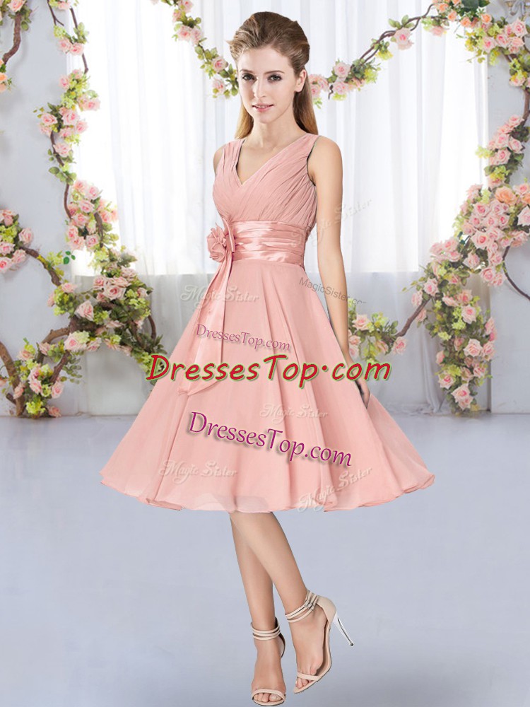 Knee Length Empire Sleeveless Pink Vestidos de Damas Lace Up