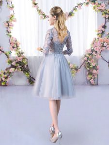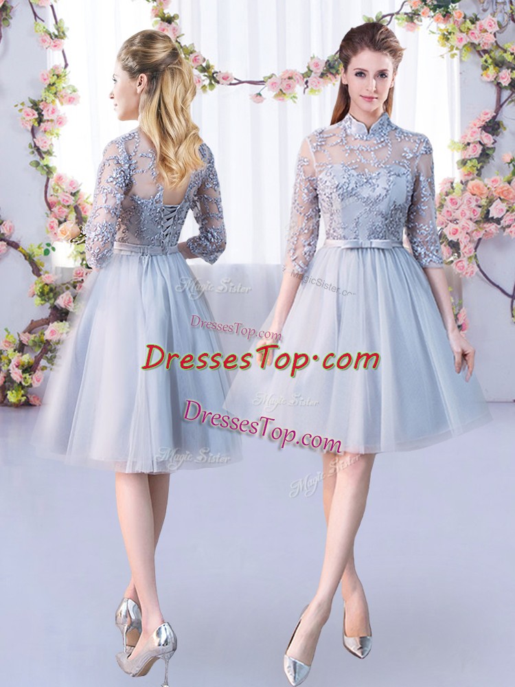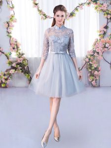 Knee Length Grey Dama Dress Tulle Half Sleeves Lace and Belt