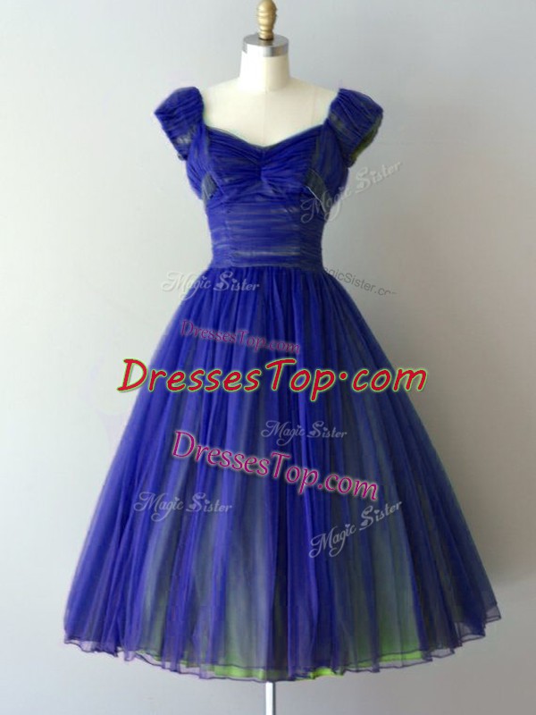 Knee Length Lace Up Quinceanera Court Dresses Royal Blue for Prom and Party and Wedding Party with Ruching