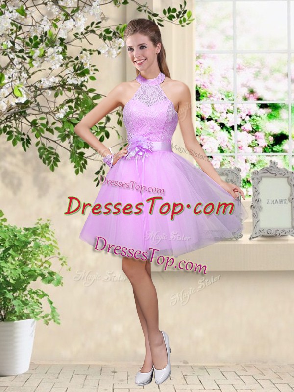 Knee Length Lavender Dama Dress Tulle Sleeveless Lace and Belt