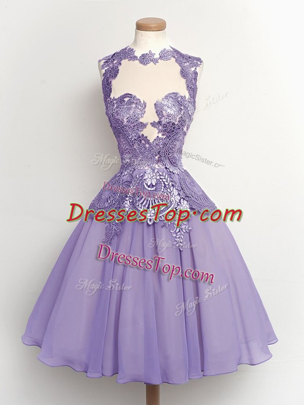 Knee Length Lilac Vestidos de Damas High-neck Sleeveless Lace Up