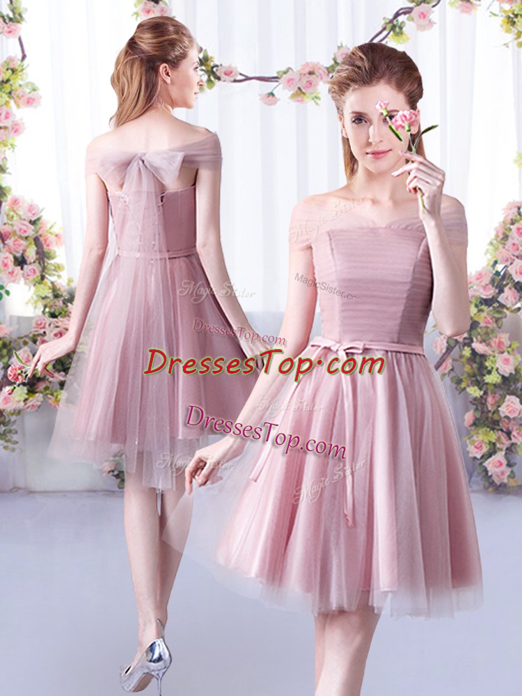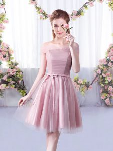 Knee Length Pink Dama Dress for Quinceanera Tulle Sleeveless Belt