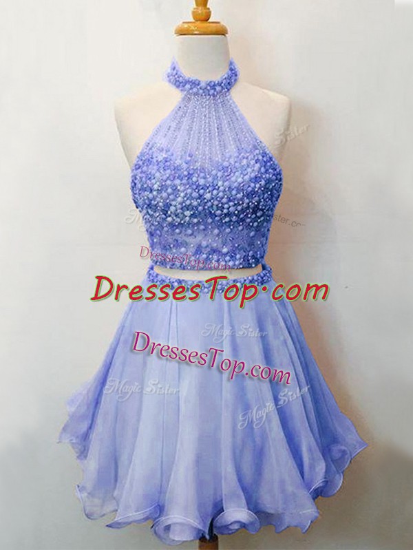 Knee Length Two Pieces Sleeveless Lavender Quinceanera Court Dresses Lace Up