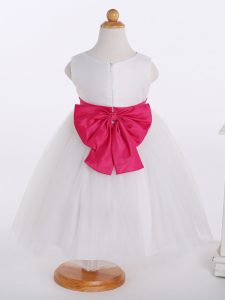 Knee Length Zipper Child Pageant Dress White for Wedding Party with Bowknot and Hand Made Flower