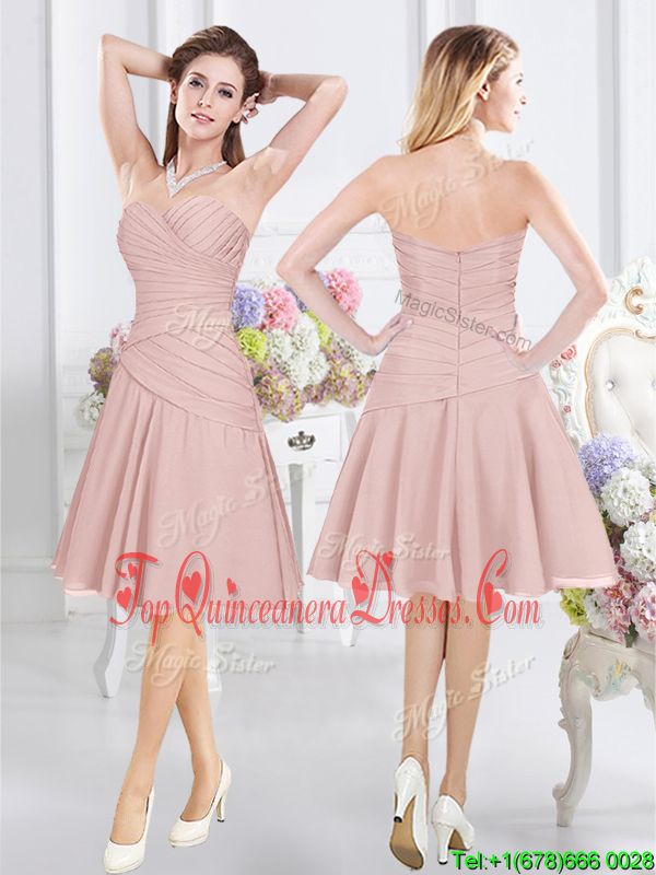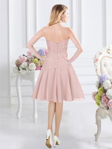 Knee Length Zipper Dama Dress for Quinceanera Pink and In for Prom and Party and Wedding Party with Ruching