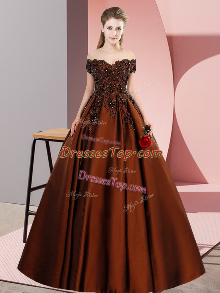 Lace and Appliques Quinceanera Gown Brown Zipper Sleeveless Floor Length