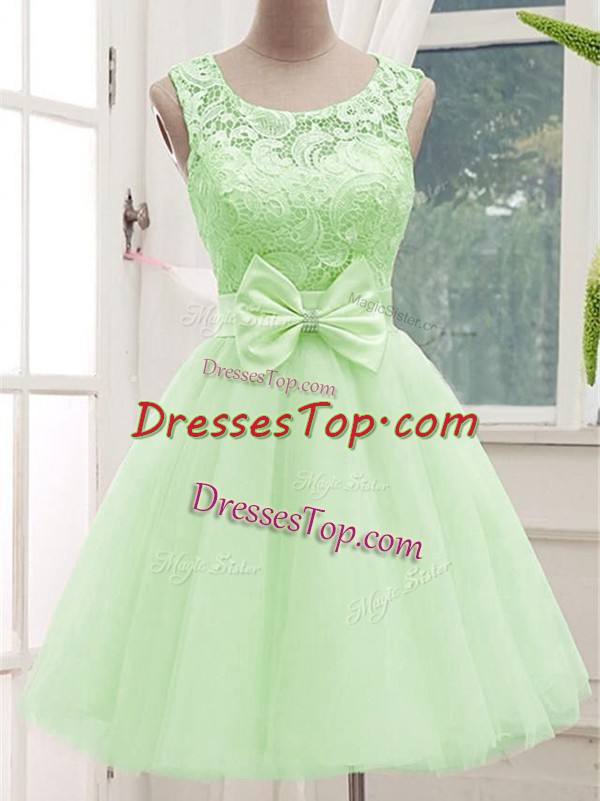 Lace and Bowknot Quinceanera Dama Dress Yellow Green Lace Up Sleeveless Knee Length