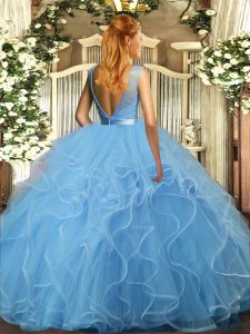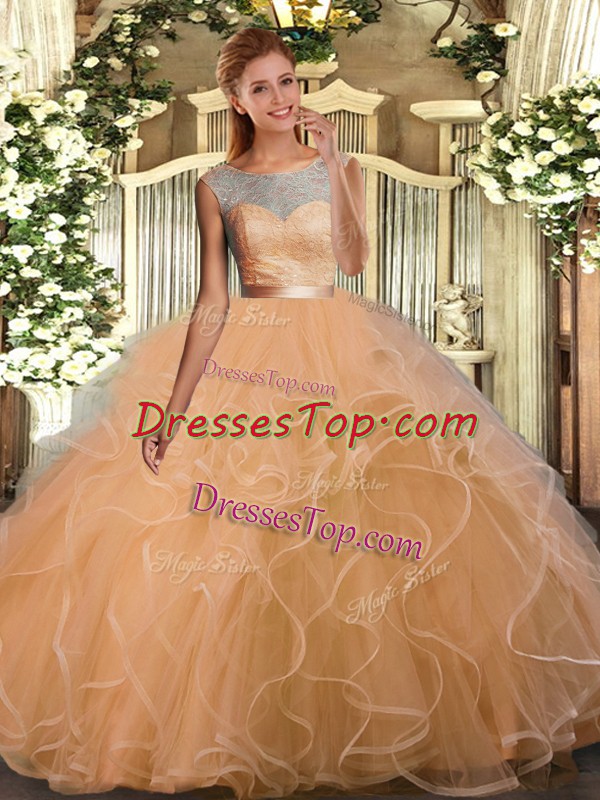 Lace and Ruffles 15 Quinceanera Dress Gold Backless Sleeveless Floor Length
