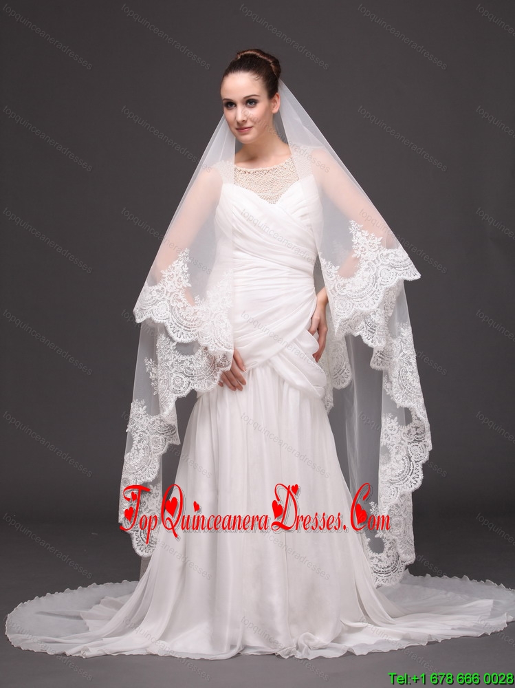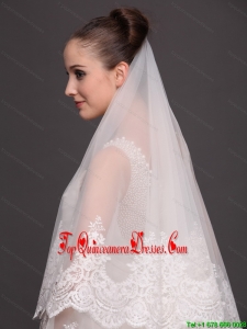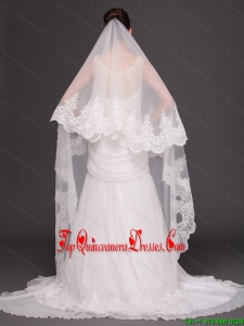 Lace Appliques One-tier Cathedral Tulle Popular Wedding Veil