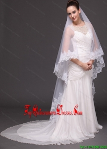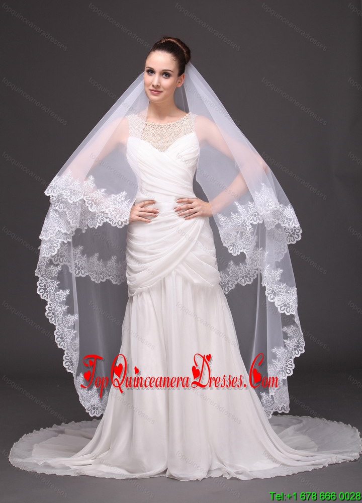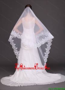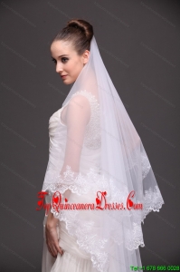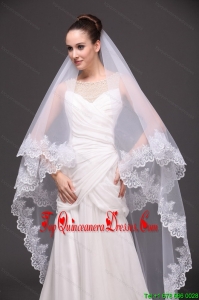 Lace Appliques Two-tier Tulle Drop Veil For Wedding
