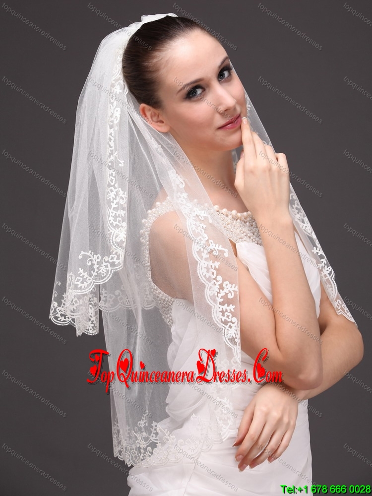 Lace Appliques Two-tier Tulle Graceful Wedding Veil