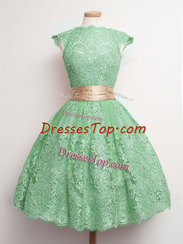 Lace Cap Sleeves Knee Length Quinceanera Court of Honor Dress and Belt