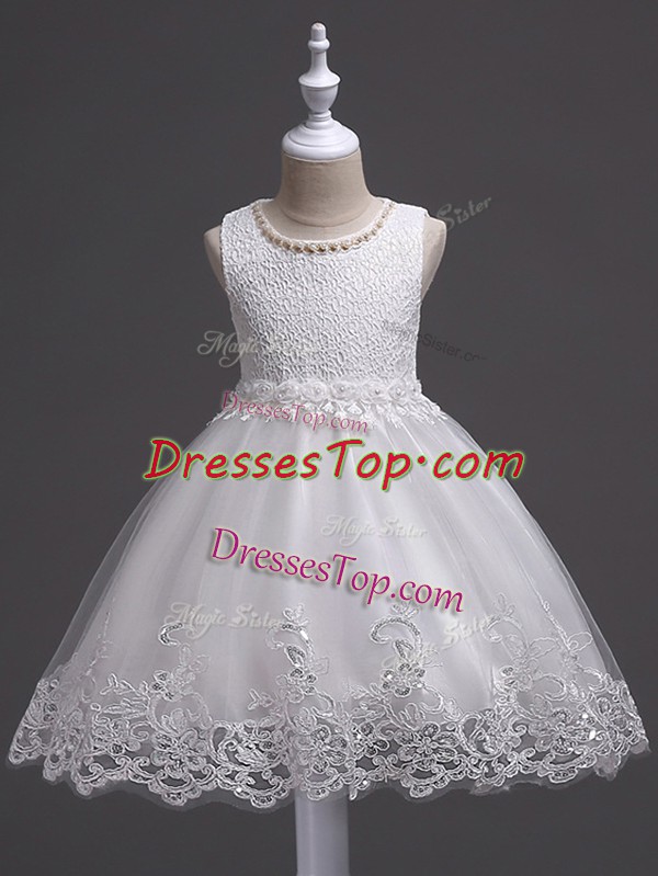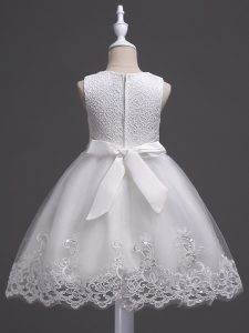 Lace Custom Made Pageant Dress White Zipper Sleeveless Knee Length