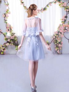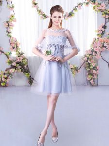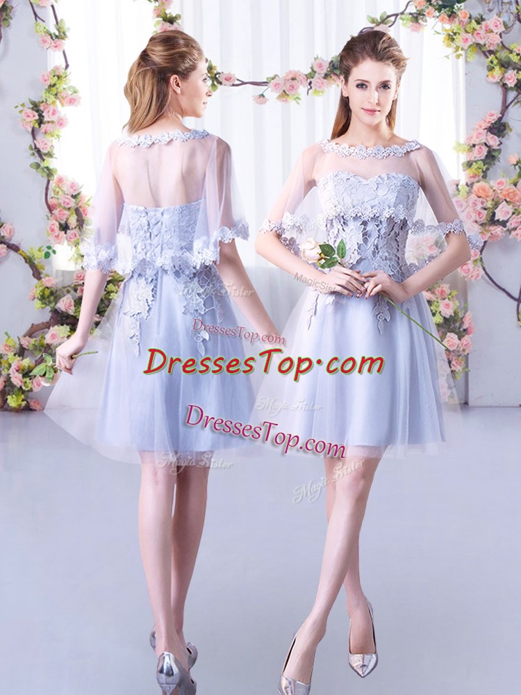 Lace Dama Dress for Quinceanera Grey Lace Up Sleeveless Mini Length