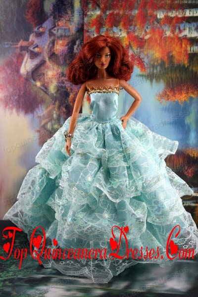 Lace Over Skirt and Light Blue Gown For Barbie Doll