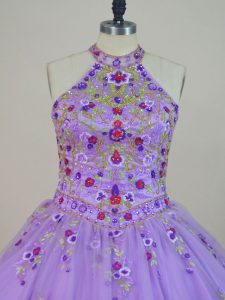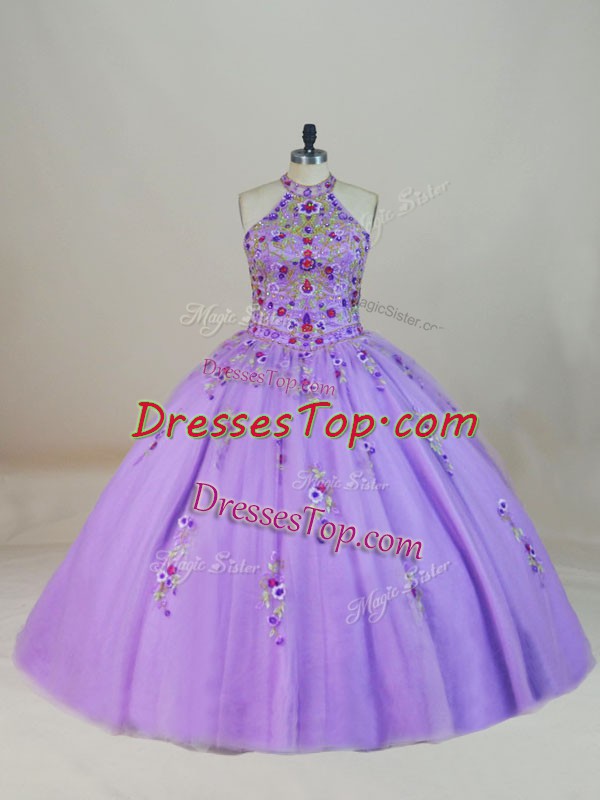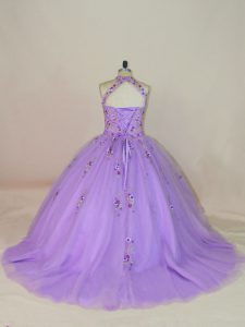 Lace Up 15th Birthday Dress Lavender for Sweet 16 and Quinceanera with Beading and Embroidery Brush Train