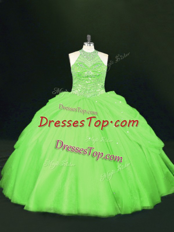 Lace Up Halter Top Beading Quince Ball Gowns Tulle Sleeveless