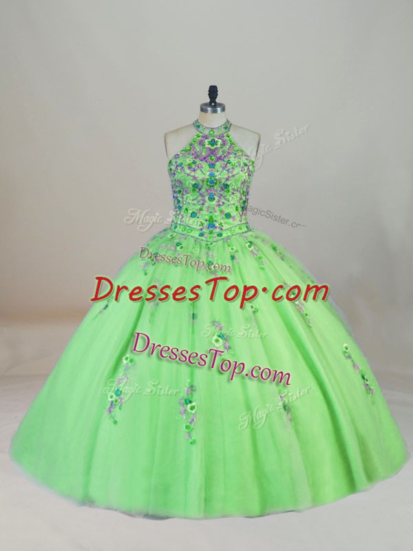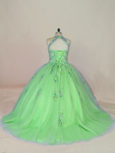 Lace Up Quinceanera Dress Appliques and Embroidery Sleeveless Brush Train