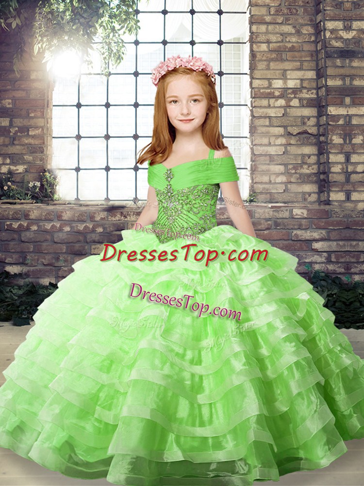Lace Up Straps Beading and Ruffled Layers Child Pageant Dress Organza Sleeveless