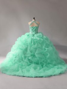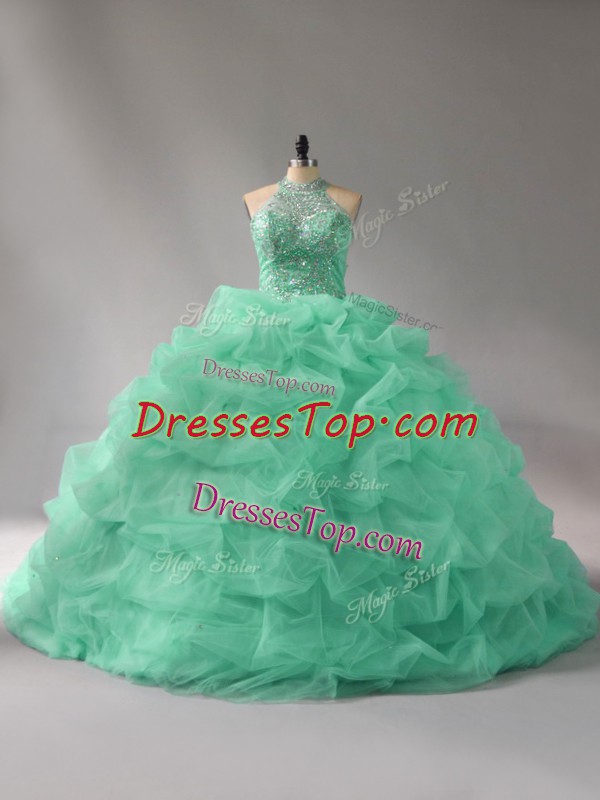 Lace Up Sweet 16 Dresses Apple Green for Sweet 16 and Quinceanera with Beading and Pick Ups Court Train