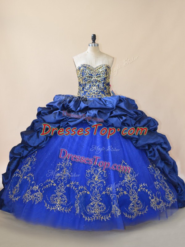 Lace Up Sweet 16 Dresses Royal Blue for Sweet 16 and Quinceanera with Beading Brush Train
