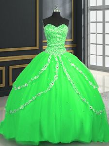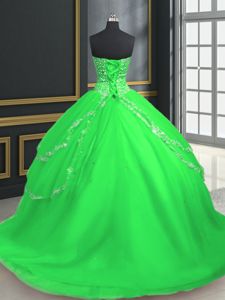 Lace Up Sweetheart Beading and Appliques Quinceanera Gown Tulle Sleeveless Brush Train