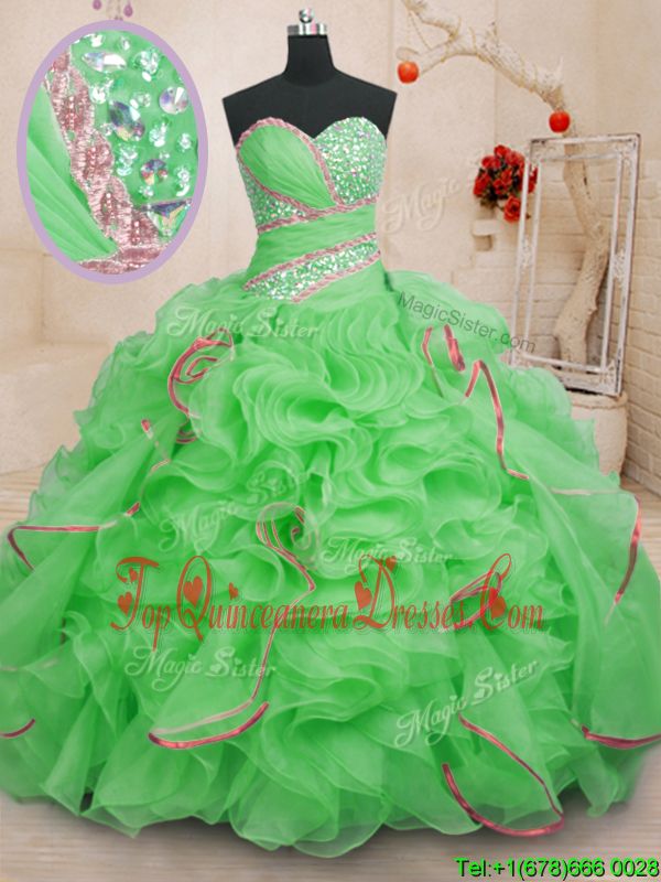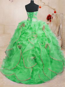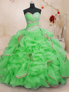 Lace Up Sweetheart Beading and Ruffles Sweet 16 Dresses Organza Sleeveless Brush Train