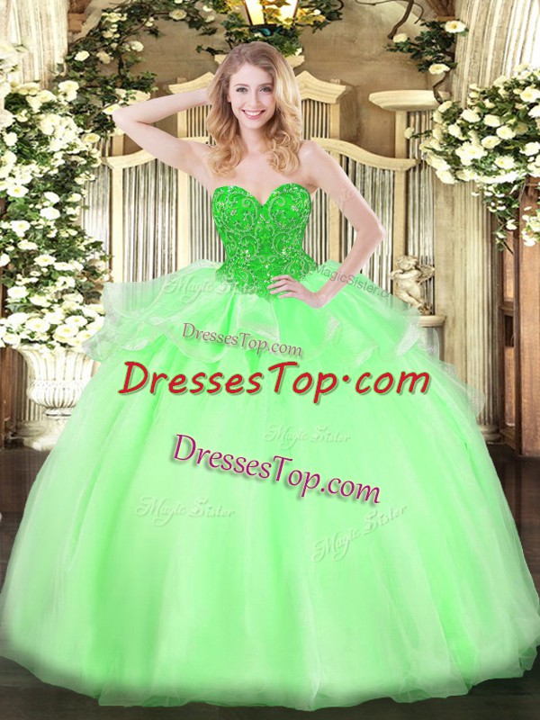 Lace Up Sweetheart Beading Sweet 16 Quinceanera Dress Organza Sleeveless