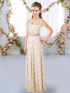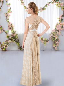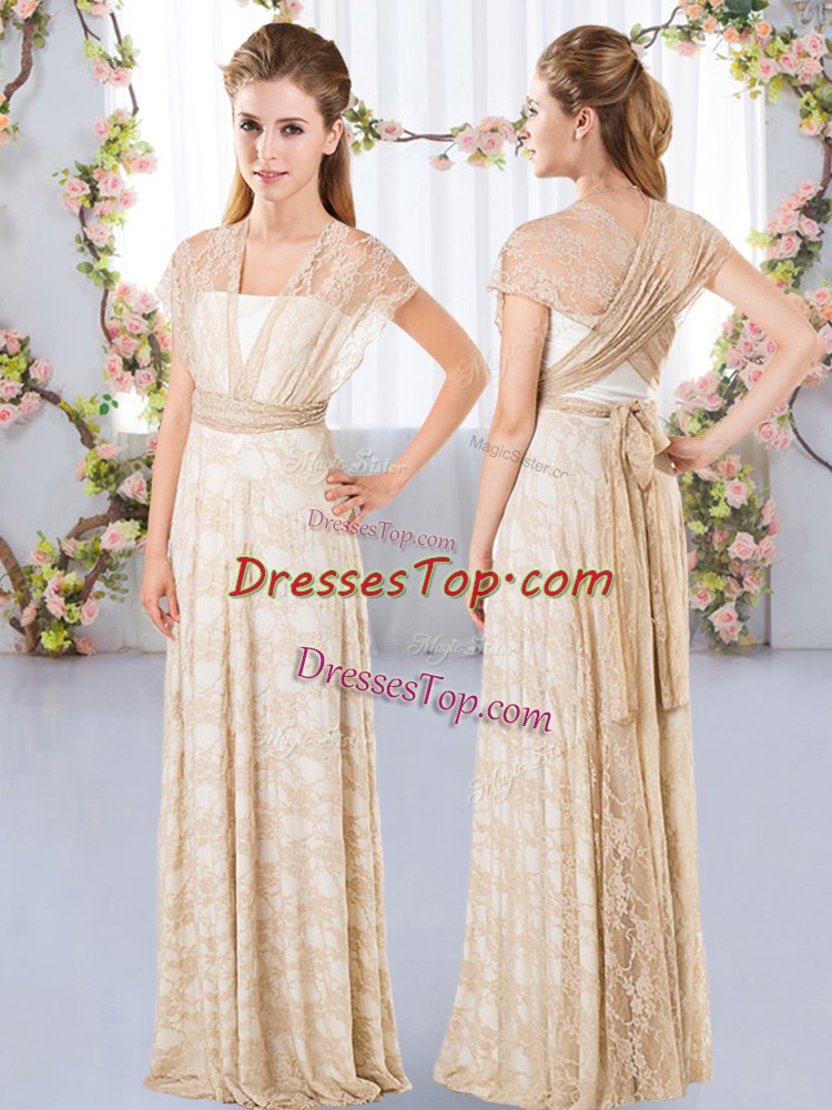Lace V-neck Short Sleeves Side Zipper Lace Dama Dress for Quinceanera in Champagne