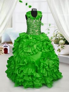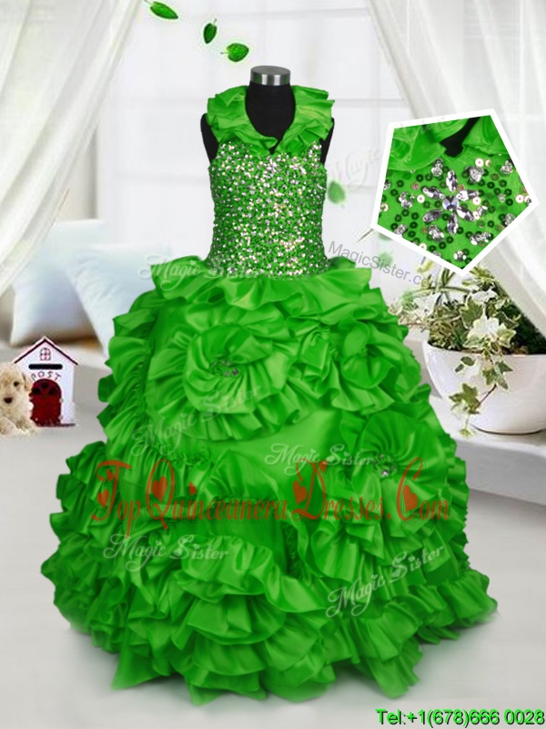 Latest Ball Gowns Pageant Dress Halter Top Taffeta Sleeveless Floor Length Zipper