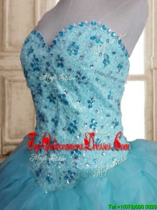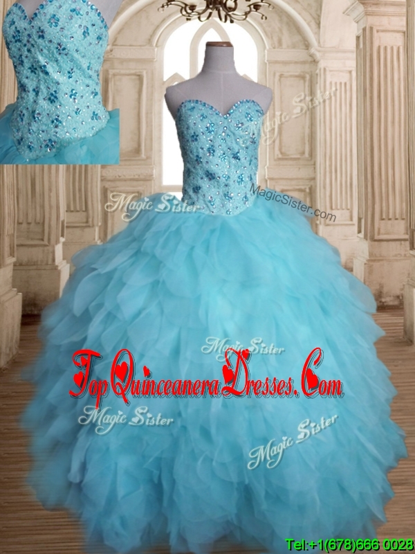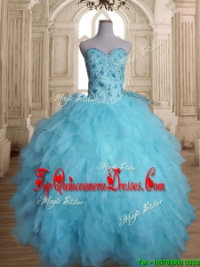 Latest Beaded and Ruffled Tulle Quinceanera Dress in Baby Blue