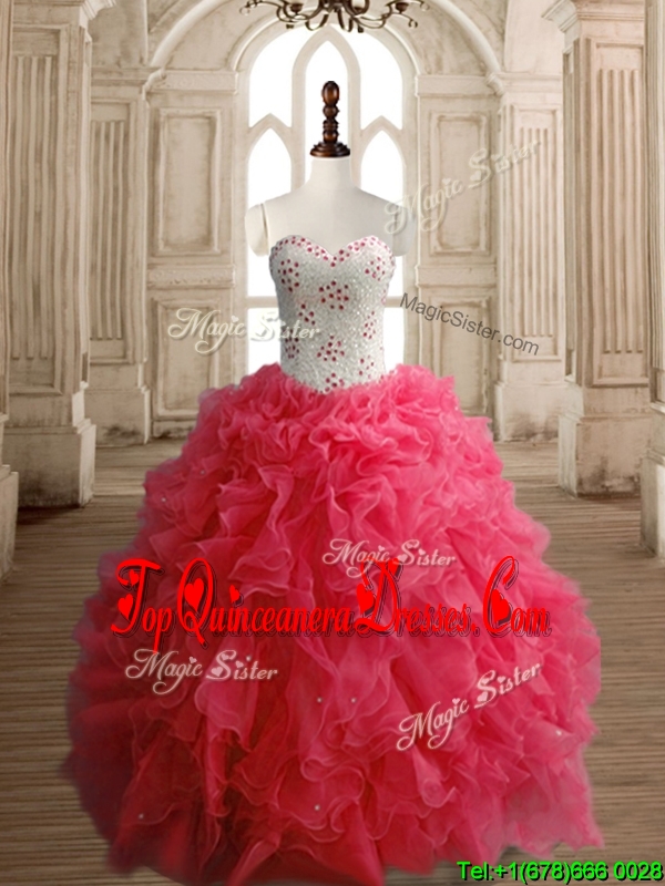 Latest Beaded Bodice and Ruffled Quinceanera Dress in Coral Red