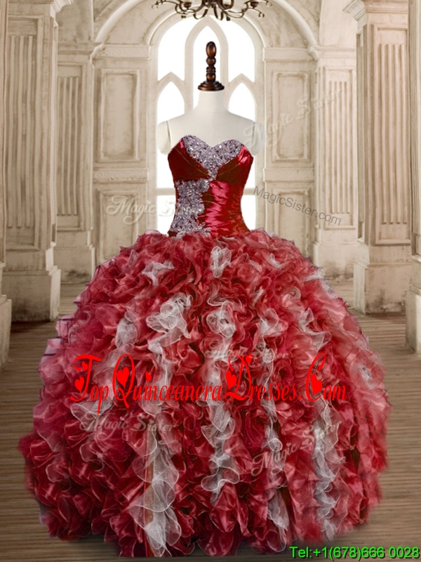 Latest Beaded Wine Red and White Sweet 15 Dress in Organza