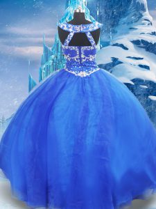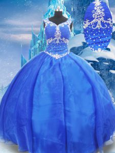 Latest Blue Sleeveless Beading Floor Length 15th Birthday Dress