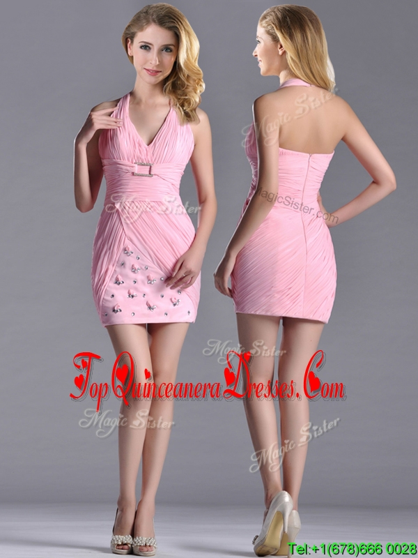 Latest Column Halter Top Dama Dress with Beading and Ruching