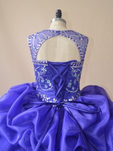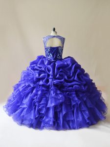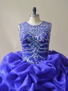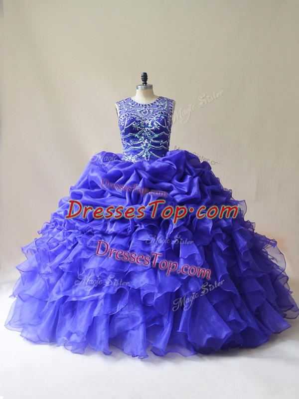 Latest Floor Length Lace Up Quince Ball Gowns Purple for Sweet 16 and Quinceanera with Beading and Ruffles and Pick Ups