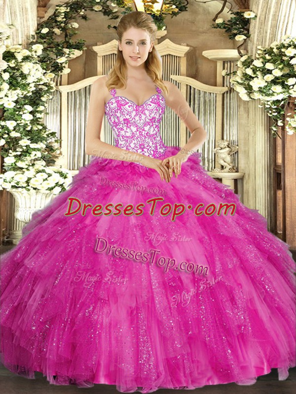 Latest Fuchsia Sleeveless Tulle Lace Up Sweet 16 Dress for Sweet 16 and Quinceanera