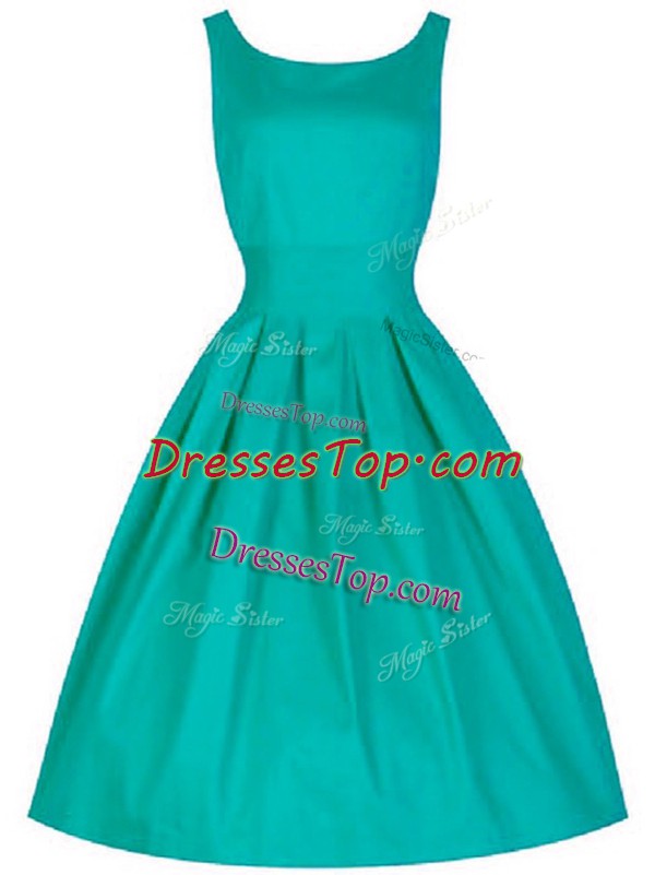Latest Knee Length Turquoise Dama Dress for Quinceanera Scoop Sleeveless Lace Up