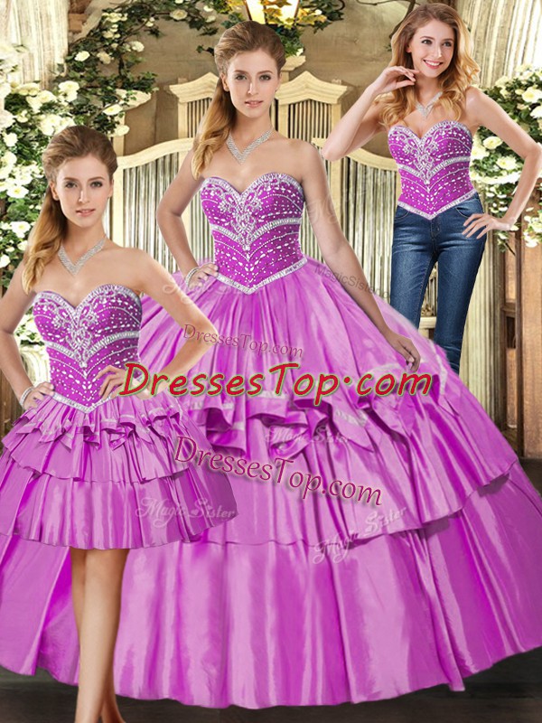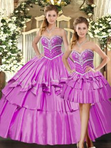 Latest Lilac Sweetheart Lace Up Beading and Ruffled Layers Quinceanera Dress Sleeveless
