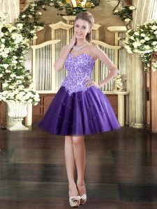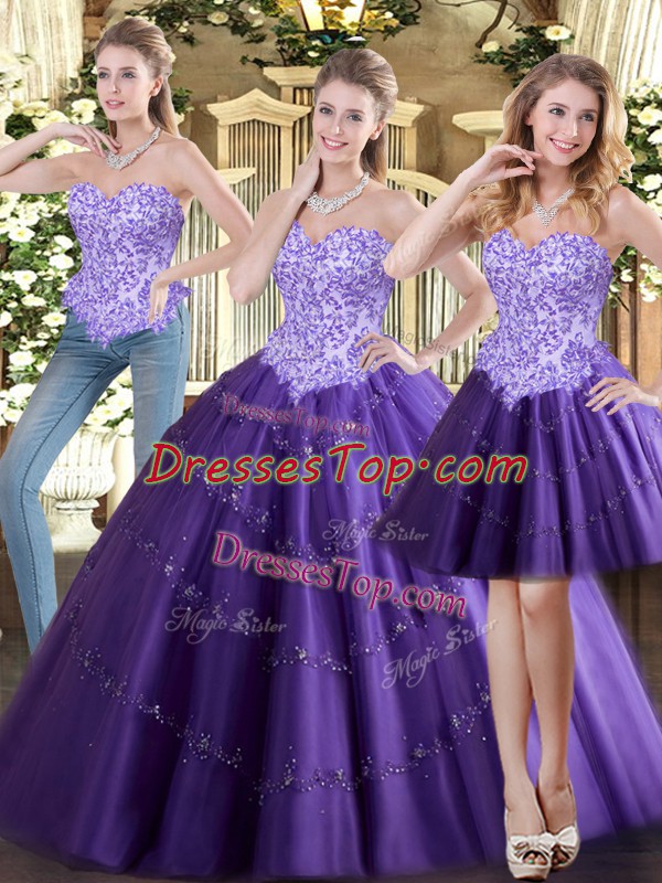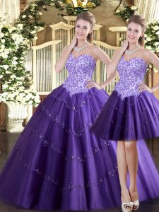 Latest Purple Sleeveless Floor Length Beading Lace Up Quinceanera Dress