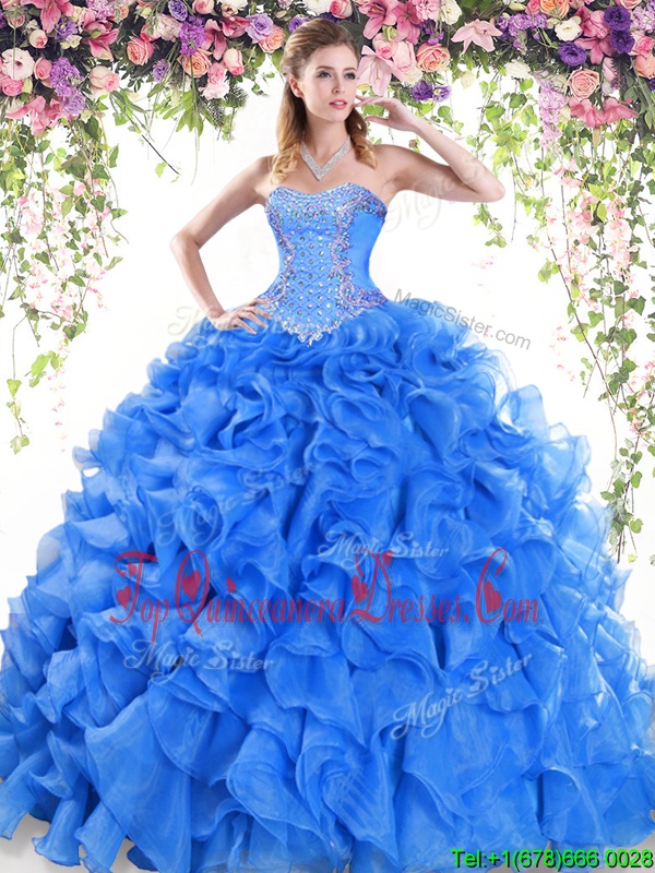 Latest Sleeveless Beading and Ruffles Lace Up Ball Gown Prom Dress
