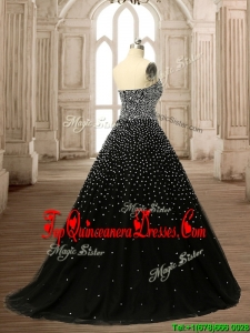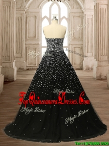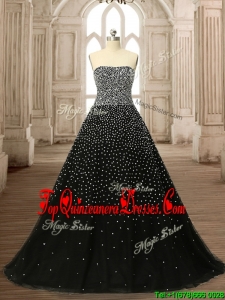Latest Strapless Beading Black Quinceanera Dress with Brush Train